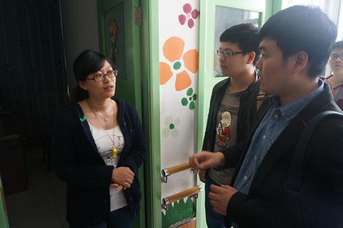 为了不打扰这些小孩们上课,影响他们的情绪。老师和志愿者小心翼翼地开展志愿服务工作。首先,学工组中的在职女党员来到康复中心的游乐室和小孩一起交流,做游戏,在游戏结束后,教师党员们弯下腰帮助行动不方便的小朋友们穿鞋。在志愿服务结束后,教师党员们又和学生一起拿出制定好的表格,参与到现场的调研中来,和在场的授课老师和家长热情地交流着,希望在交流过程中找到更好的形式服务好这些孩子。老师和家长也提出了宝贵的意见。