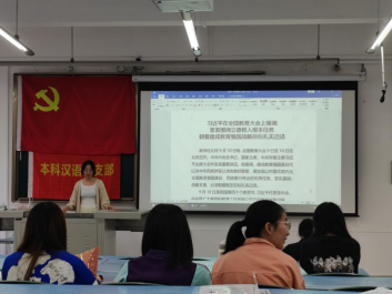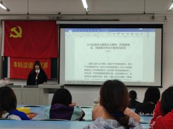 2024年10月19日,本科汉语党支部于X2214开展10月主题党日学习活动。本次活动由曾品贤同志、张媛同志和满珍明同志领学,支部全体成员参加。