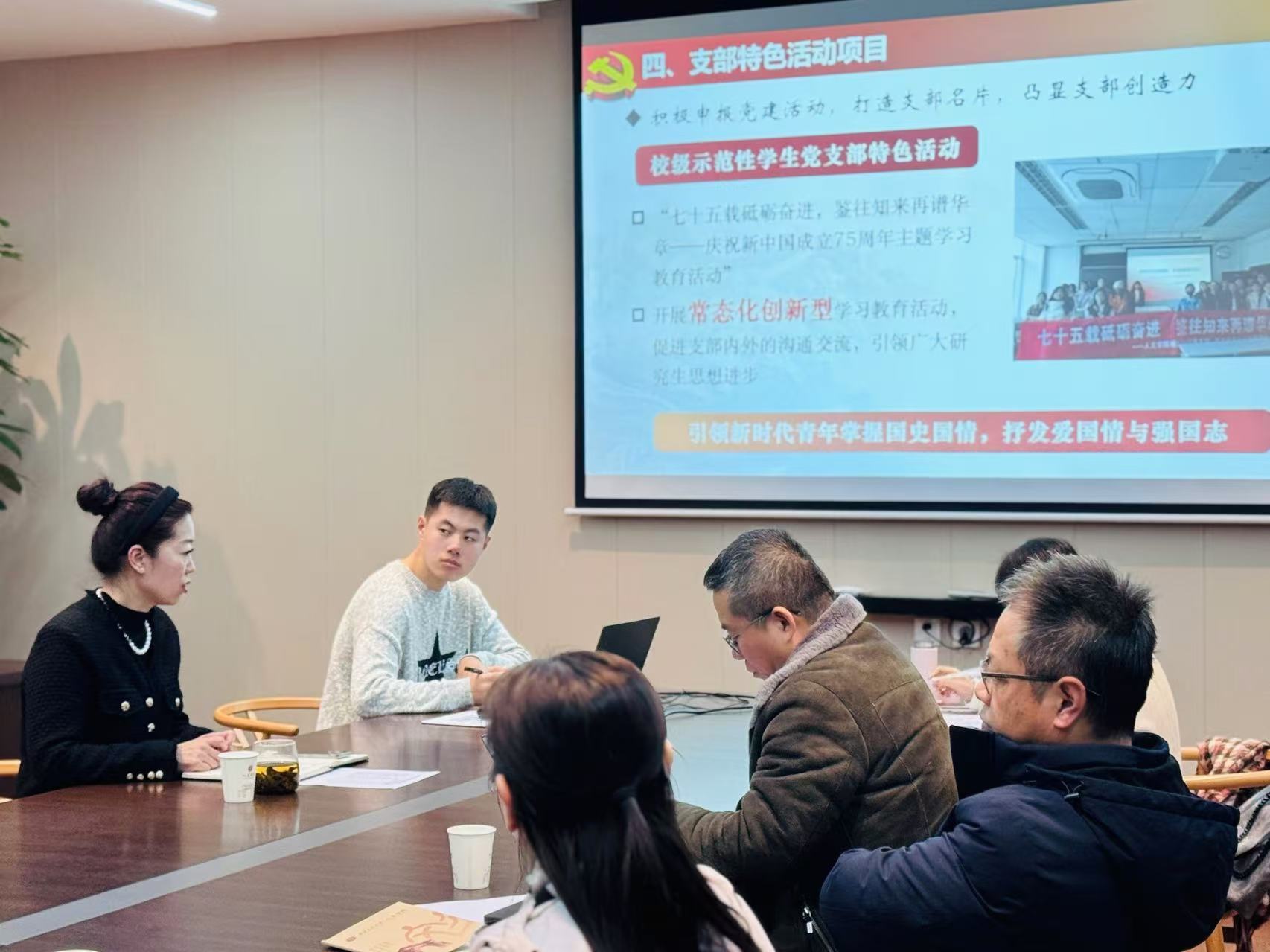 会上,罗妍妍书记仔细听取各党支部书记的述职汇报,通过“一述一评”的方式,结合日常开展工作情况对各党支部进行逐一点评。她充分肯定了学院各基层党支部为党建工作付出的努力,并提出进一步改进和优化支部工作的期望与要求:一是要突出学科专业特色,集中资源打造“一部一品”的特色党建项目,将党建项目做实做精;二是加强师生党支部联动联合,发挥教师学术优势和学生活力优势,多思考党建与事业融合的角度、维度,切实推动“一融双高”;三是要注意小切口与大境界的结合,聚焦内生动力、内在特色,结合师生需求和实际开展丰富多彩的主题党日和党建品牌创建活动。