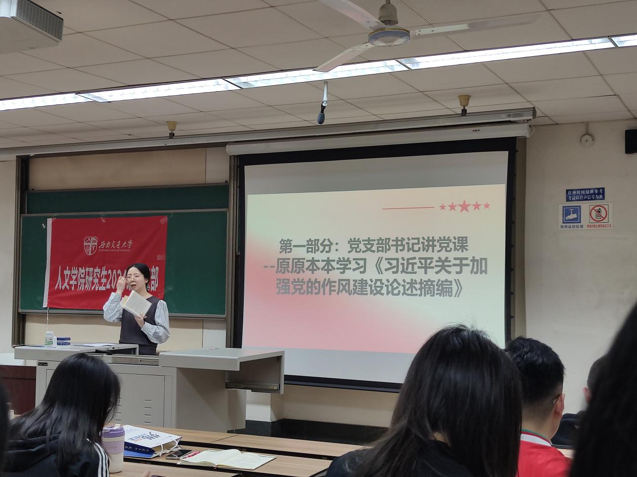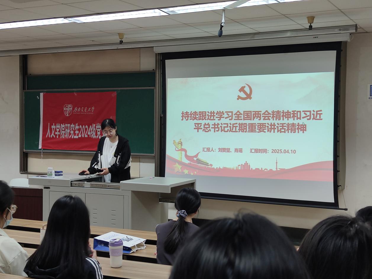 2025年4月10日下午,tyc8722太阳集团城研2024级党支部在九里校区J4224教室开展4月主题党日活动。本次活动由郦炫竹同志主持,支部成员和入党积极分子参加学习。