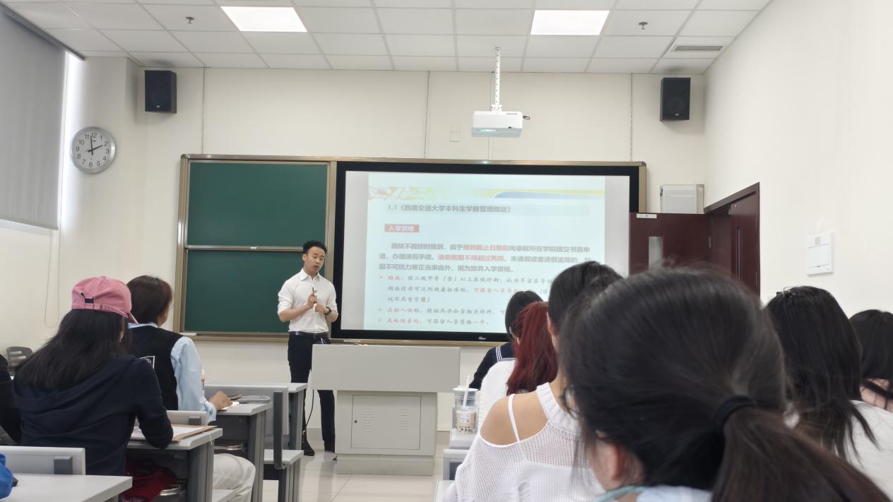 党课第三讲,郭立昌同志首先介绍了相关校纪校规、法律法规,从《太阳集团tcy8722本科生学籍管理规定》、国家安全教育和大学生法制教育三个方面讲述了作为交大本科生应遵守的规章制度,作为新时代青年应该遵守的法律法规,让同学们领悟不仅要将法律法规铭记于心,更要做到知行合一。