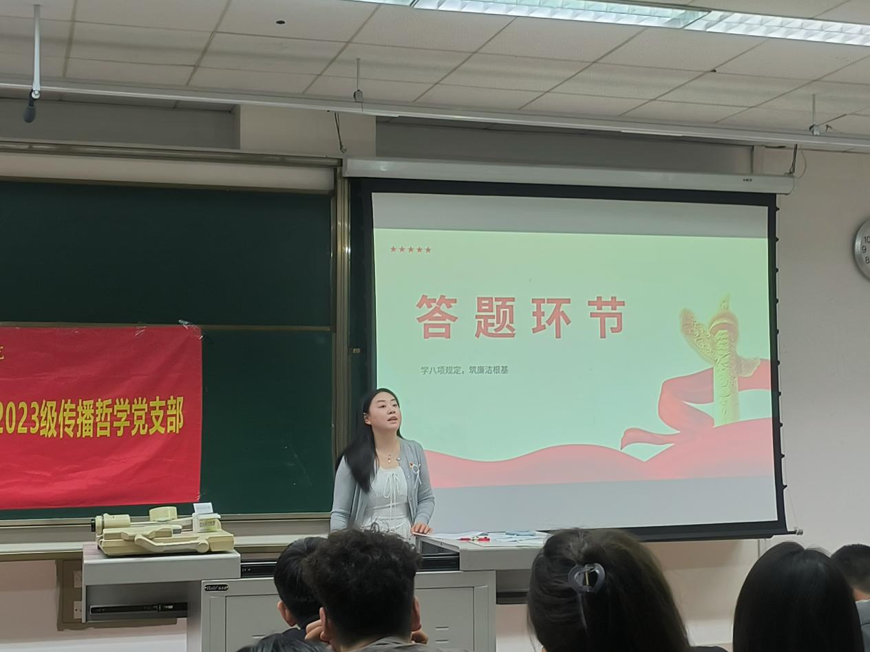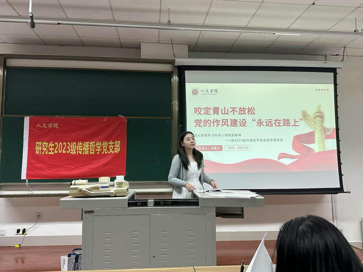 2025年4月10日下午,tyc8722太阳集团城研2023级传播哲学党支部在九里校区J4106开展4月主题党日活动。本次活动由党支部书记张馨月主持。