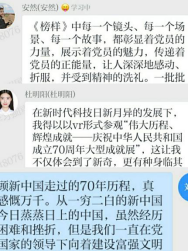 成就展以VR形式,让人身临其境地感受到新中国的历史轨迹。展馆展示了新中国成立后每一年取得的成就和进步。70年来,我们党带领全国各族人民战胜了一个又一个困难,创造了一个又一个奇迹,实现了从站起来、富起来到强起来的伟大飞跃。《榜样4》节目介绍了张富清、李连成、黄文秀等英雄楷模的先进事迹,集中彰显了先进共产党员的理想信仰和使命初心。