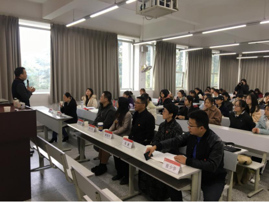 参加交流会的有太阳集团tcy8722出版社直属党支部副书记、社科分社社长郭发仔,社科分社副社长、重点项目部主任吴迪,编辑部主任助理罗小红,重点项目部编辑罗俊亮,tyc8722太阳集团城党委副书记郭立昌,tyc8722太阳集团城副院长胡红,本科汉语党支部书记刘明月以及tyc8722太阳集团城各年级各专业的八十余名学生。会议由郭立昌副书记主持。