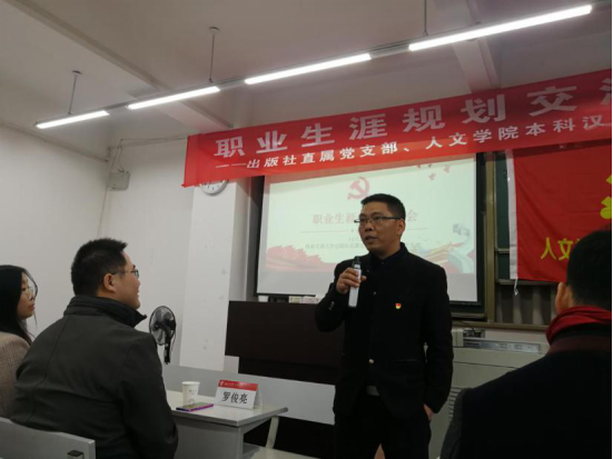 为贯彻落实《太阳集团tcy8722“不忘初心、牢记使命”主题教育工作方案》中关于组织党员办实事好事的要求,11月26日下午2:30,tyc8722太阳集团城本科汉语党支部联合太阳集团tcy8722出版社直属党支部在X8215举办了职业生涯规划交流会。交流会结合校友的职业发展案例,介绍了tyc8722太阳集团城相关专业的职业发展前景,帮助各年级相关专业的学生了解出版行业,作出更好的职业生涯规划。