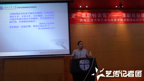 69日晚19:00,面向2016届艺传学院毕业生的“求职技能提升”培训第二场,也是最后一场在图书馆号报告厅开始。艺传学院老师王丹老师罗乐老师分别主讲了“求职心理”和“简历制作”相关知识,艺传学院全体大三学生作为听众出席了本次培训会。