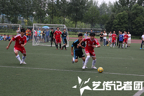 下午的天气阴沉沉的,天空中飘着小雨,但大家还是早早的来到比赛场地进行赛前热身运动。“下雨并没有浇灭双方队员的士气,你看,艺传足球队的成员们身着红色的拜仁球服,这暗示了他们对于比赛的热情和信心!”作为观众,2014级广告专业的李耀东同学发表了自己的看法。