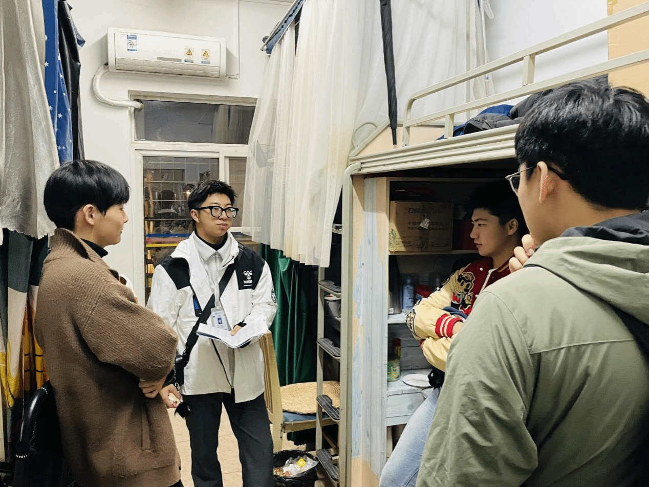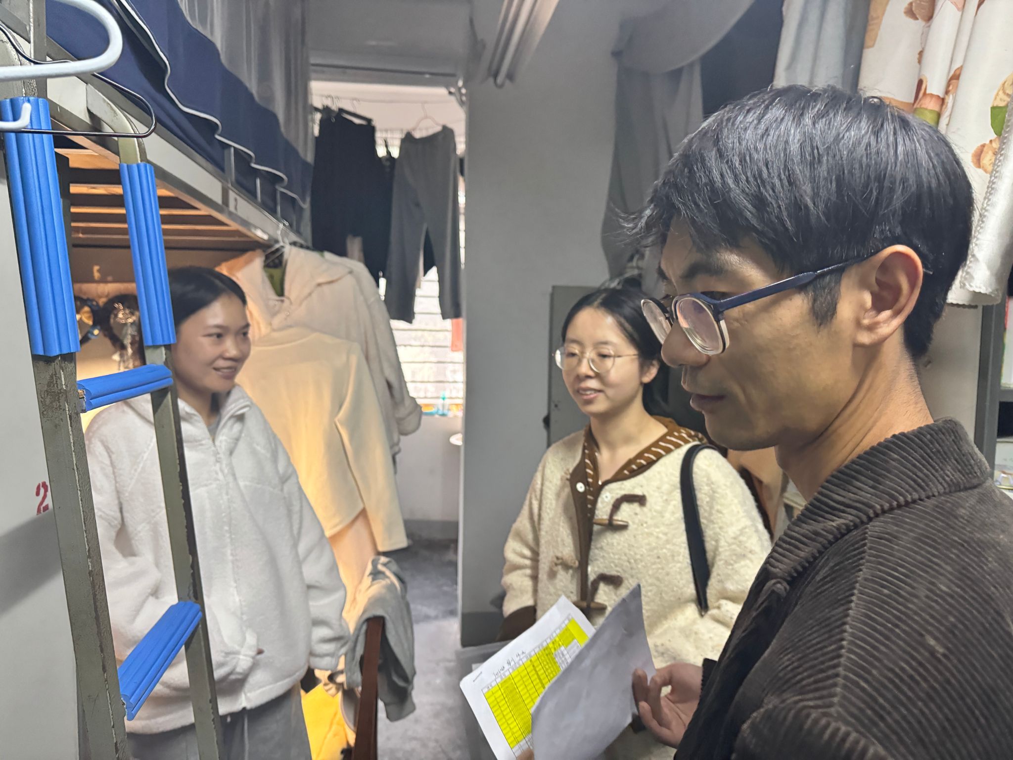研究生辅导员刘爽、文璐、靳钰涵老师,分别前往了2024级、2023级和2022级研究生宿舍进行走访,与同学们进行了亲切的交流并检查宿舍安全情况。刘爽老师鼓励同学们要珍惜时光,不断提升自己的综合素质和专业能力。靳钰涵老师耐心倾听学生们的学习困惑,以及生活中的点滴小事,并给予了针对性的建议和鼓励。文璐老师提醒同学们要注意劳逸结合,关注身体健康与心理健康,保持良好的学习和生活状态。