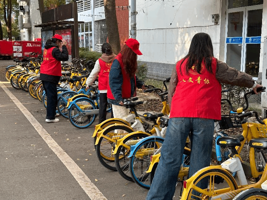 11月28日下午,在tyc8722太阳集团城青年志愿者协会的组织下,15名志愿者在学校北区四食堂前,开展“共享单车整理”劳动实践活动。志愿者们穿上统一马甲,戴好标志性红帽,按照预先分配好的任务,有条不紊地开始对乱停放的共享单车进行重新排列与归置,以恢复通行秩序,确保行人安全。经过志愿者们的整理,北区食堂前的街道面貌得到了显著改善,优化了通行状况,校园安全得到更好的保障。通过本次活动,志愿者们意识到单车秩序摆放的重要性,也提高了劳动能力,增强了劳动意识,培养了组织能力、沟通能力和团队协作能力等综合素质。