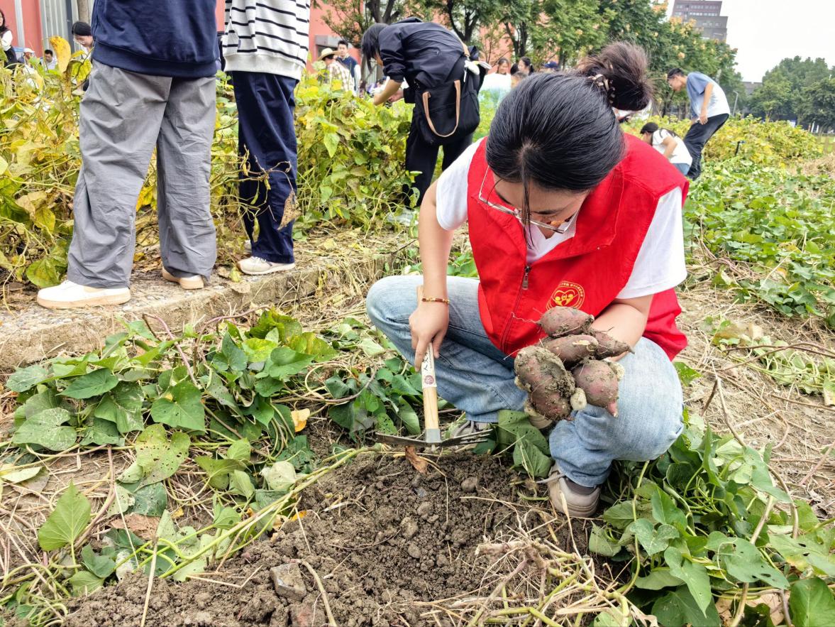 进入农场,同学们迅速投入采收工作,或弯腰拔藤、分拣花生,或小心刨土、轻取红薯,分工有序又默契十足。田间随处可见忙碌的身影,欢声笑语与泥土的清香交织,每一份认真的劳作,都在将秋日的丰收图景一点点定格,也让大家在亲手触碰果实的瞬间,真切感受到收获的满足。