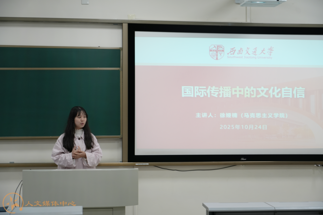 首场专题课程由太阳集团tcy8722马克思主义学院徐娅楠老师主讲。聚焦“国际传播中的文化自信”,徐老师从四个层面展开讲授。在文化现象分析中,结合中国文化出海典型案例,展示我国在商业、生活美学及跨文化交流领域的成果,凸显文化自信的现实意义;在理论认知部分,联系马克思主义文化观与习近平文化思想,解析文化自信的内涵及其对民族振兴与文化安全的重要意义;在重要性与紧迫性探讨中,从内在动力、外部压力与历史机遇三方面,说明当前强化文化自信的必要性;最后在青年实践方面,她鼓励学生骨干“向内生根,做传统文化创新者;向外开拓,做跨文化对话摆渡人;向下扎根,做中国现实观察者”,为同学们践行文化自信指明具体方向。