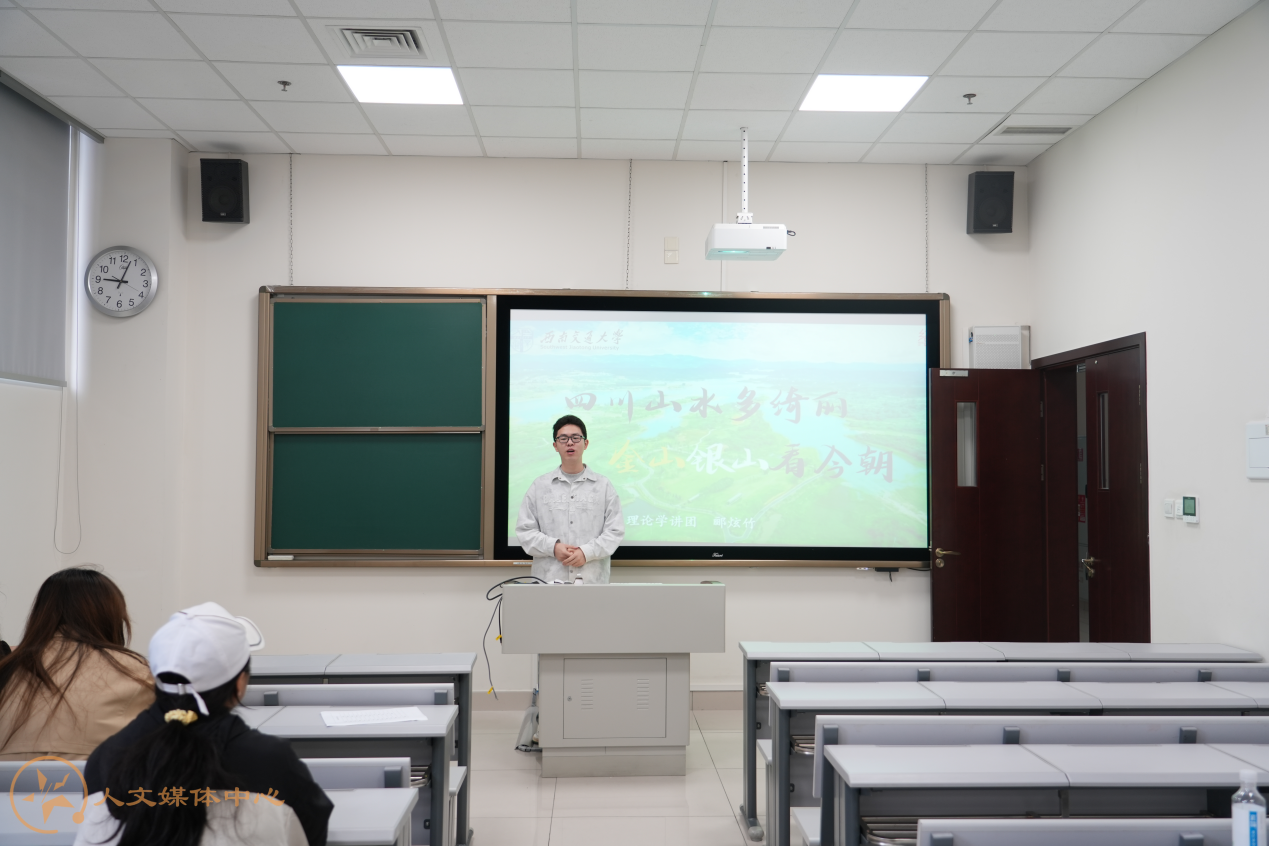 红色引领,绿色征程。首场课程“四川山水多绮丽,金山银山看今朝”在郦炫竹学长与同学的轻松互动中开场。他从“两山”理论提出20周年的时代背景切入,结合家乡眉山仁寿球溪河的治理实践,生动阐释了生态治理与民生发展的紧密联系。分享中,他也讲述了参与各种环境治理相关活动中的亲身经历,深感生态文明之路的建设离不开党和政府的指引。最后,郦学长希望自己和同学们都能通过讲好家乡故事,传播绿色理念。