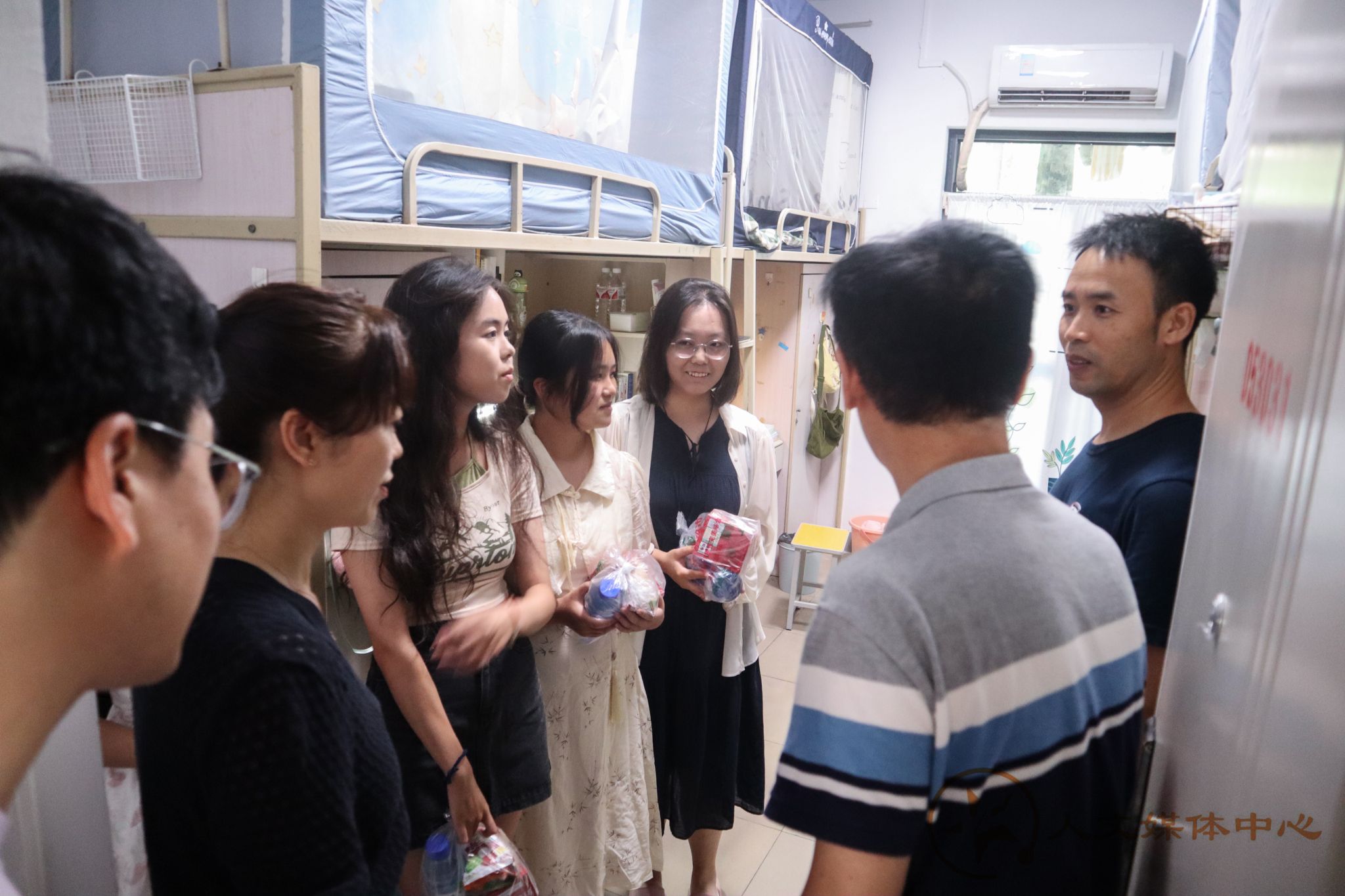 2024年9月13日下午,tyc8722太阳集团城党委书记罗妍妍,院长刘占祥,党委副书记郭立昌,副院长余夏云跟随新生辅导员朱思颖老师一起走访了新生宿舍。每到一处,老师们都与大家亲切交谈,详细询问大家的学习和生活情况,关心大家是否适应大学的校园生活,耐心解答同学们提出的各方面问题。罗书记鼓励新生要珍惜大学时光,勤奋学习,积极参与校园活动,努力成长为德智体美劳全面发展的社会主义建设者和接班人。现场气氛欢乐融融,在老师们亲切的话语,满含关心的语气中,同学们都感受到学院的深切关怀,感受到老师们对学生的关心与爱护。学院的亲切关怀和老师们殷切期望,使同学们倍感温暖和鼓舞。