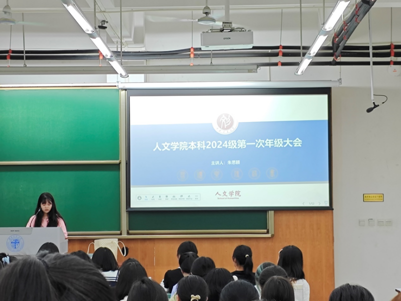 辅导员朱思颖老师主持召开第一次年级大会。朱老师向新同学们细致地讲解了学校学籍管理规定以及学分制度等学习方面的内容,并着重强调了相关校纪校规,教导同学们要牢记并遵守相关规定。最后围绕大学四年的阶段性任务给同学们进行规划指导,分享了师生常用的学校网站并向同学们传达了美好的祝福和期许。