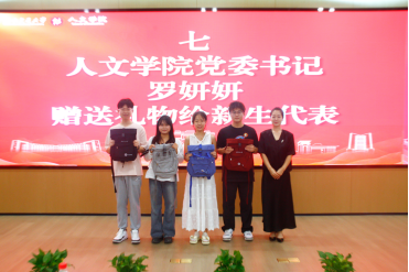 开学典礼,是新学期伊始最为隆重的启航仪式,见证着每一位学子崭新篇章的开始。罗妍妍书记满怀希冀,为新生代表赠送了学院的文创书包,双肩包承载着满满的深意与期许,传递着人文关怀与美好祝愿。
