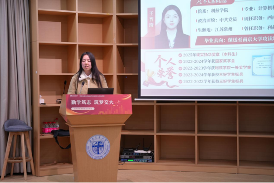 资助不止于帮扶,育人更在于赋能。本次 “勤学笃志・筑梦交大” 国家奖学金获得者经验分享沙龙在热烈的交流氛围中圆满落幕。四位同学倾囊相授的成长智慧,不仅为在场学子解开了学业与发展路上的困惑,更传递了勤学善思、勇于探索的正能量。愿全体交大学子以榜样为镜、向优秀看齐,深植 “竢实扬华,自强不息” 的精神基因,在勤学笃行中厚积薄发,在探索创新中勇攀高峰,让青春在追逐梦想的征程中绽放绚丽光彩!