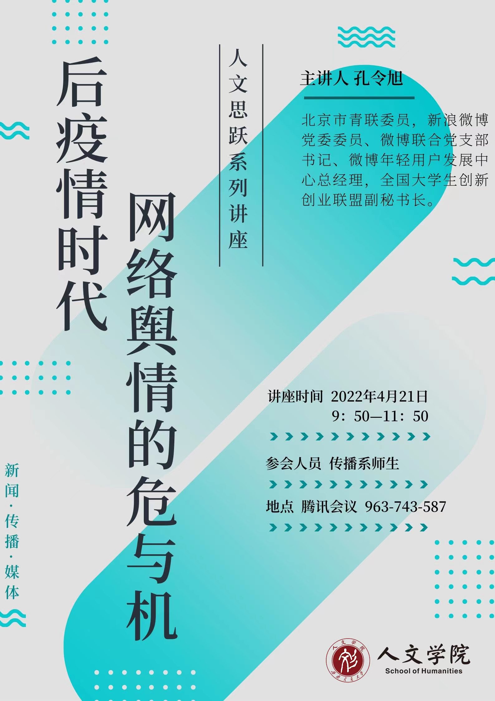 主讲人:孔令旭。北京市青联委员,新浪微博党委委员、微博联合党支部书记、微博年轻用户发展中心总经理,全国大学生创新创业联盟副秘书长。