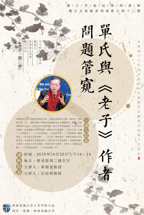 诸子学论坛系列讲座暨人文思跃系列讲座第四十一至四十四期