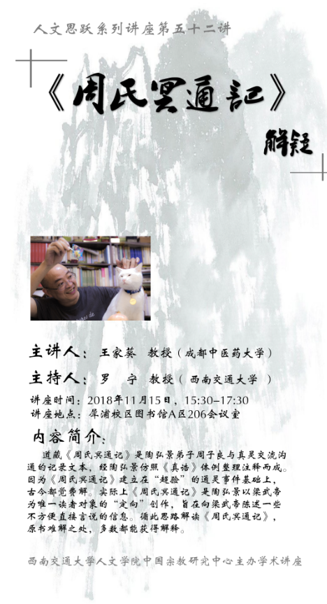 【讲座题目】《周氏冥通记》解疑