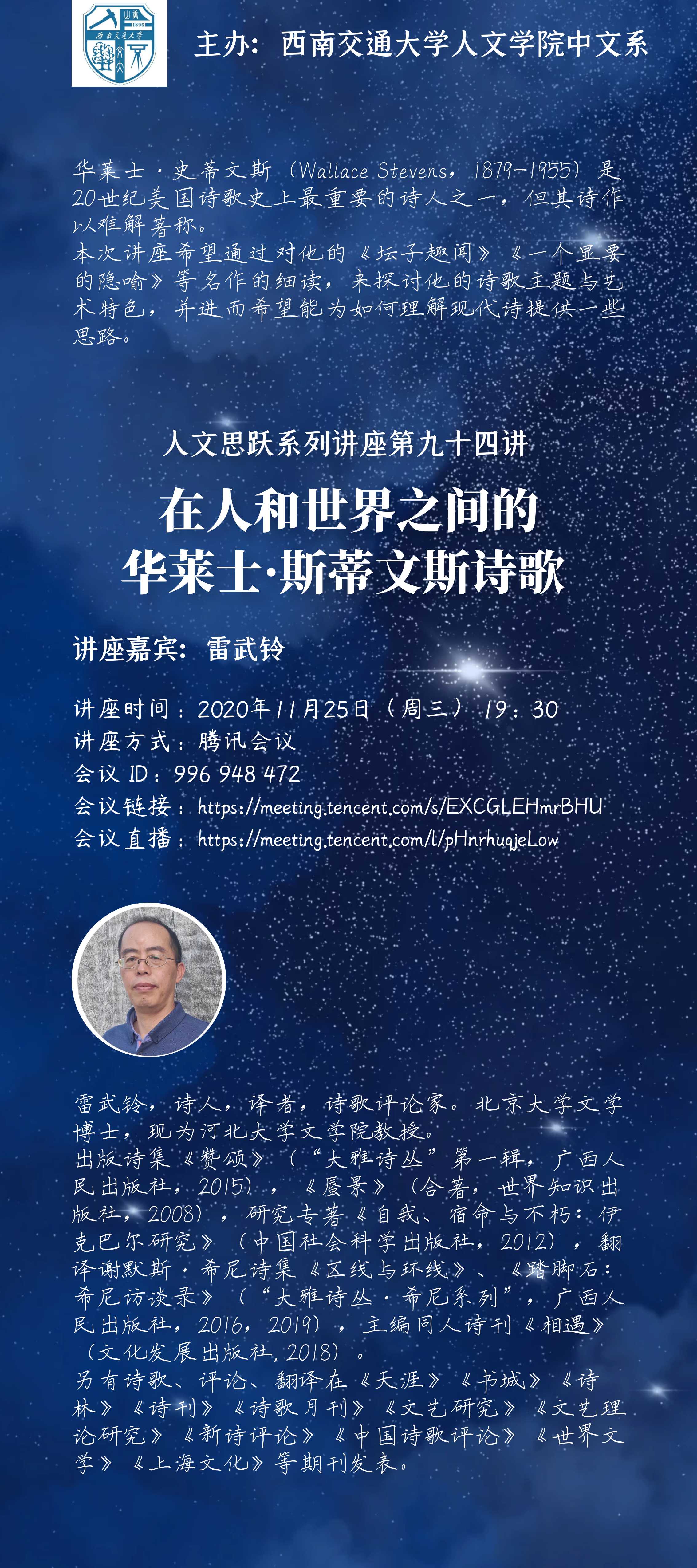 讲座时间:2020年11月25日周三 19:30