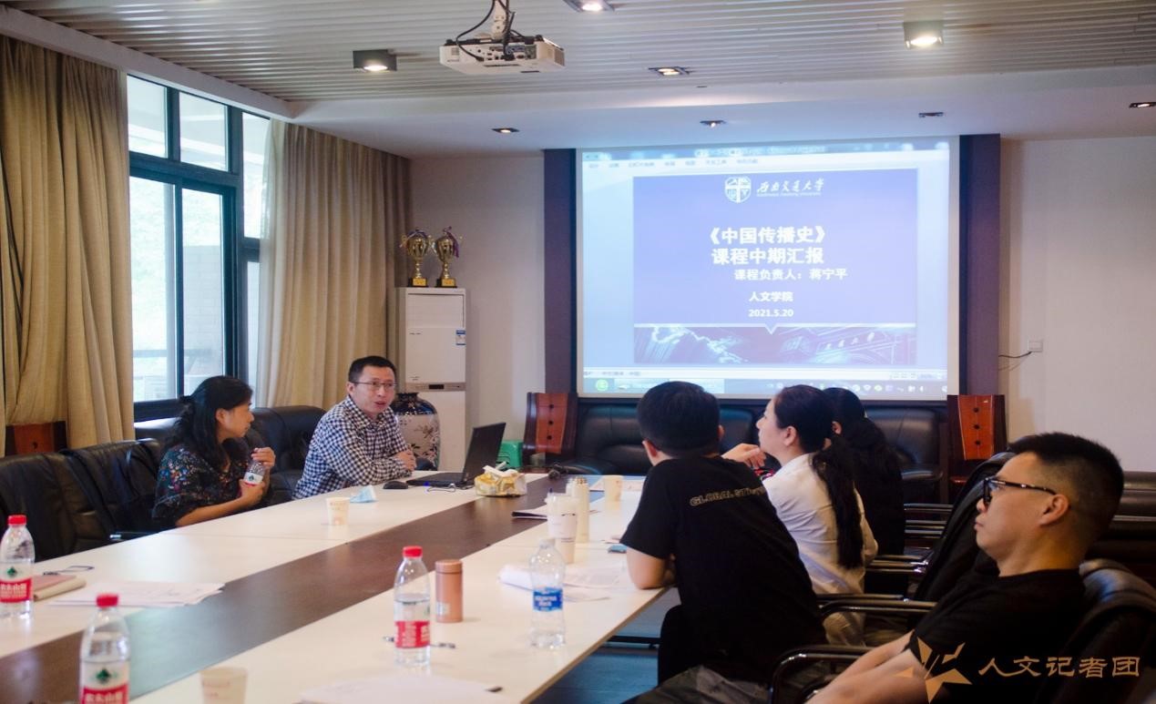 在后续的研讨交流中,蒋宁平老师的《中国传播史》课程、朱洁老师的《创新能力基础训练》课程、郭立昌老师的《悦读与旅行》课程、吴德利老师的《中国现当代文学(ⅠⅡ)》课程、梅红老师的《新闻评论》课程、刘沙林老师的《中外广告史》课程、张镭老师的《广告图形创意》课程、沈如泉老师的《国学经典导读》课程、甘霖老师的《音乐与人生》课程、李阳老师的《大型场景的航拍融媒体新闻采编虚拟仿真实验》课程均入选2020年校级一流本科课程建设项目。老师们课程介绍准备充分,课程也各具特色,教学实践过程明确、成果显著、反馈良好。在课程介绍过程中,各位老师们也进行了对线下实践、线上教学、经费分配、资源利用、学校要求、社会贡献等多方面相关内容的讨论,对不同课程项目也进行了针对性研究与讨论,助力课程建设。