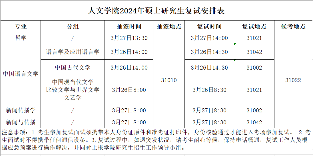 【硕士研究生招生】tyc8722太阳集团城2024年硕士研究生复试安排表