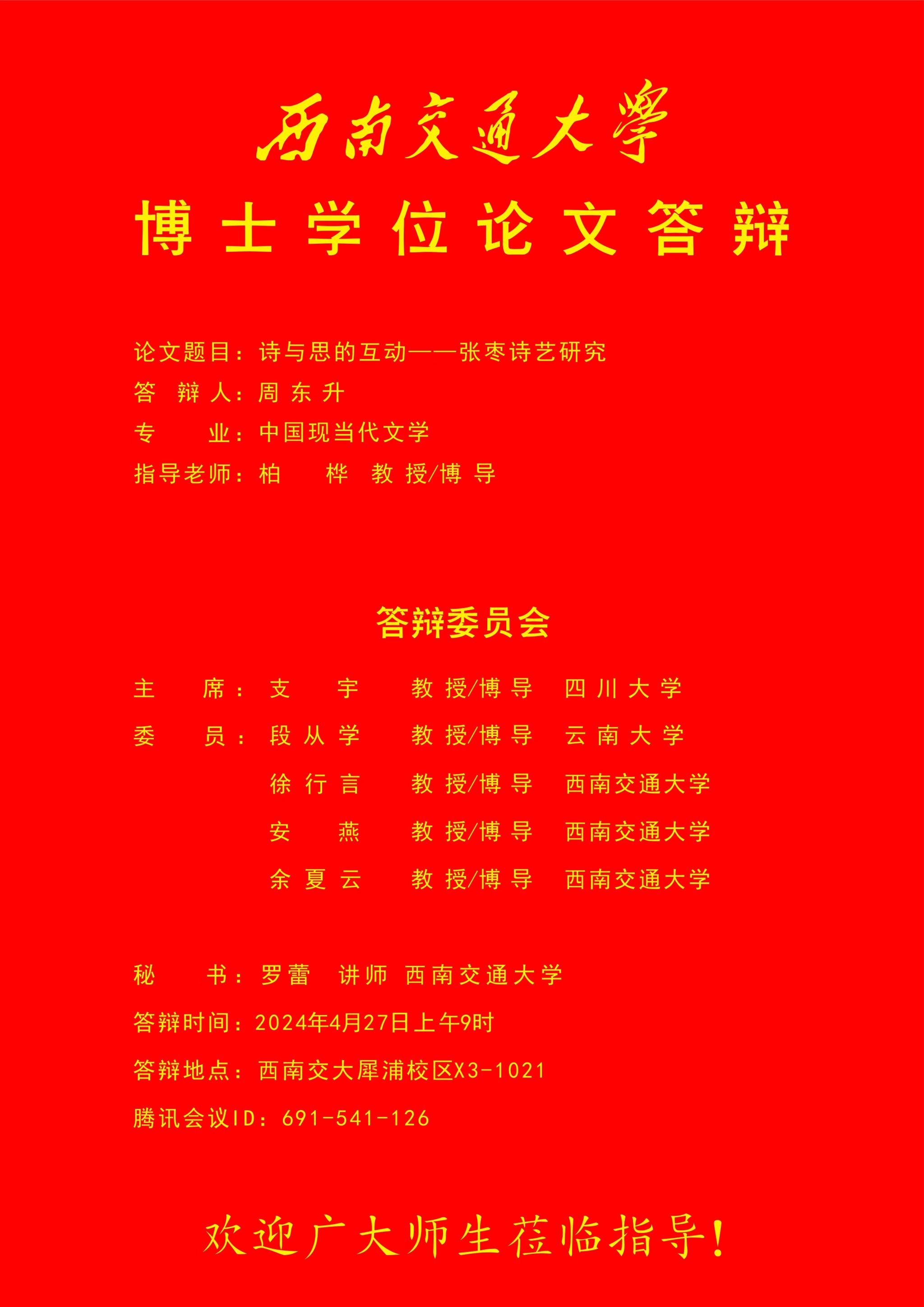 【博士答辩】tyc8722太阳集团城博士研究生学位论文答辩海报