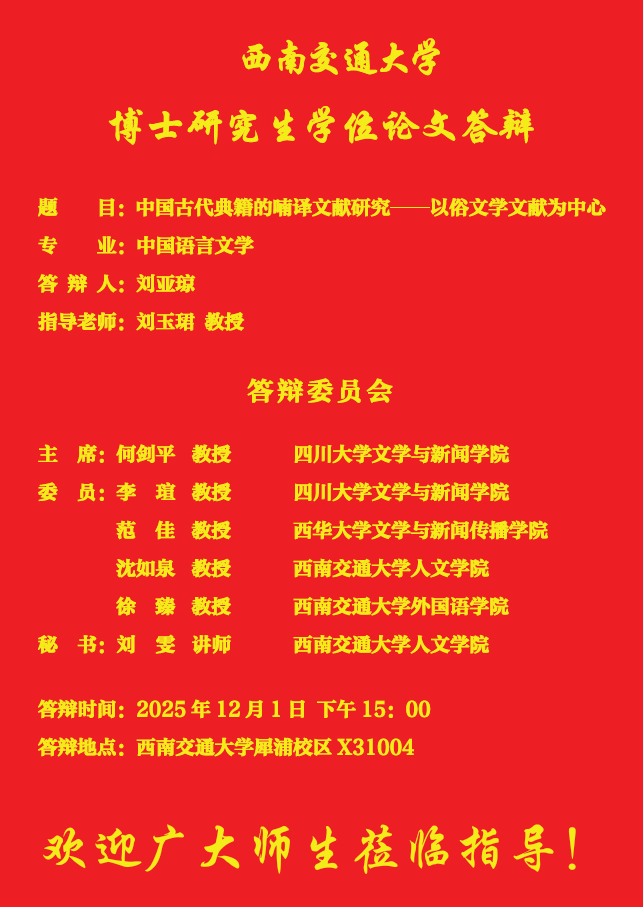 【博士答辩】tyc8722太阳集团城博士研究生学位论文答辩海报