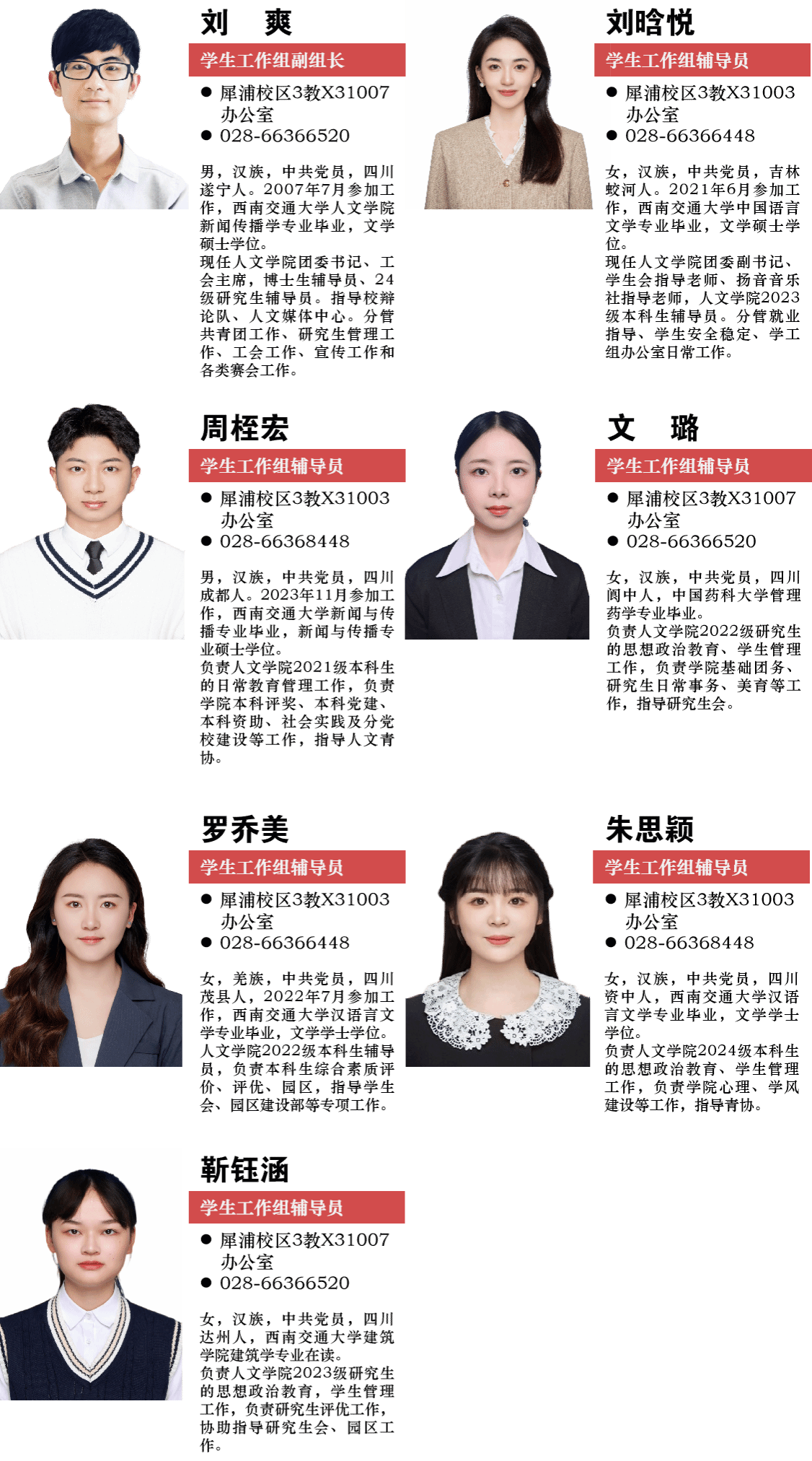 学院太阳集团组目前共有专兼职辅导员七名,坚持以团队为抓手,着力提升立德树人成效。学院抓好学生和学工队伍建设,抓住重点学生帮扶和培养,提升育人成效。我院学生会、研究生会、青年志愿者协会、媒体中心四大学生组织获得学生组织十佳大满贯。学院学生连年获评学校最高个人荣誉竢实扬华奖章,我院学生连续两年担任四川省学生联合会执行主席,校级学生组织优秀个人荣誉称号我院有61人,占比全校20%。学院学工建设如火如荼,学生成长成才全面开花!